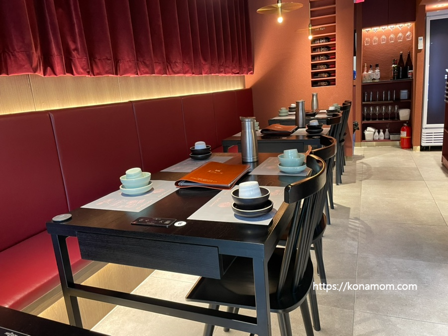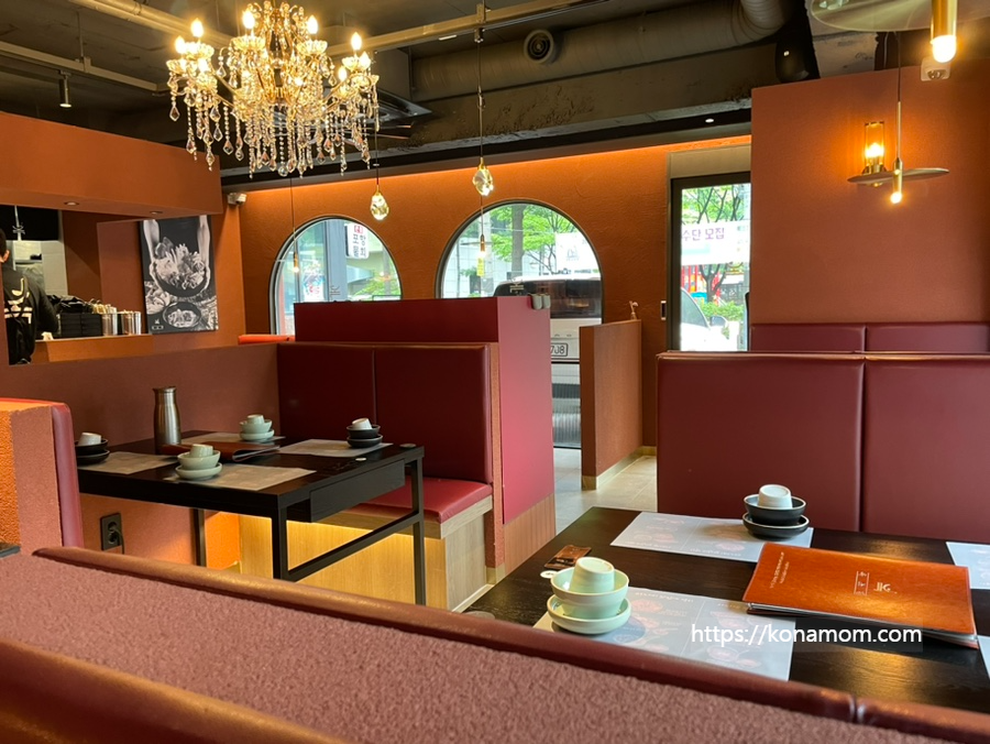 테이블이 많지 않지만 내부가 깔끔하고 고급스러운 인테리어로 되어 있어요.
