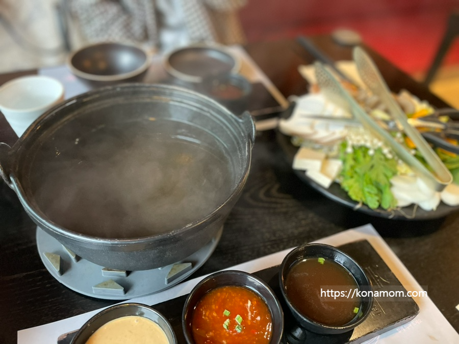 너무 맵고 짜기만 한 음식들 먹다가 깔끔한 육수에 야채 듬뿍 넣은 샤브샤브 먹고 나니 건강해진 기분이었어요.