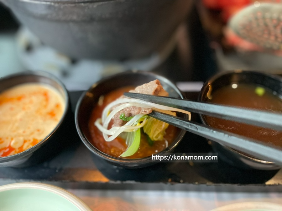 지식백과에서 검색해 보니 샤부샤부라고 하는데, 식당에서는 보통 샤브샤브라고 표기해서 저도 샤브샤브라고 표기하겠습니다.