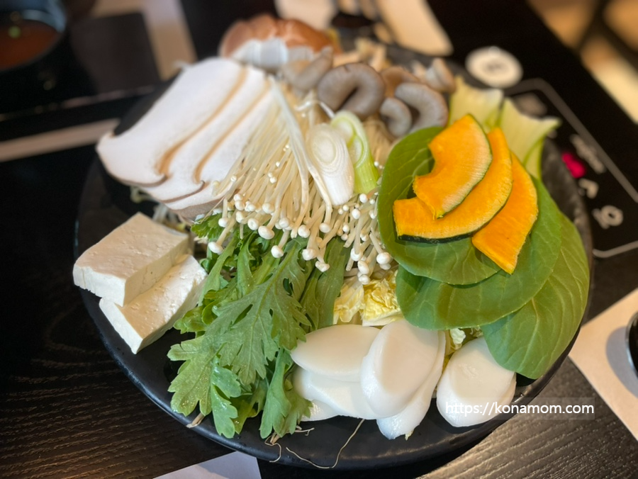 야채가 정말 푸짐하게 나왔어요. 두부, 떡 등 몇 가지는 처음만 나오고 두세 번째는 안 나와요.