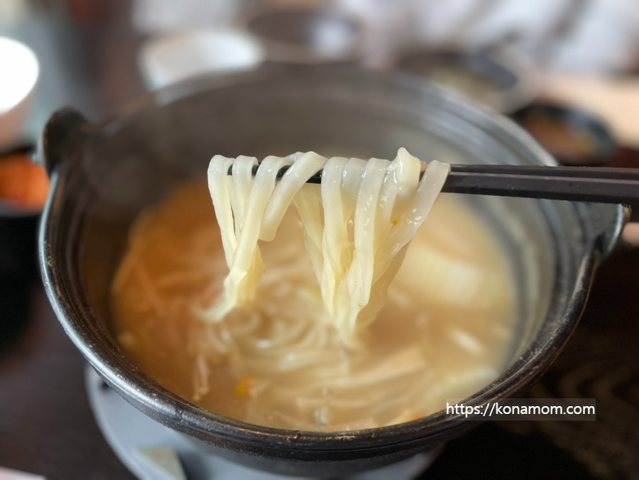 그리고 후식으로 칼국수를 먹었는데, 생면이라 끓이는 시간은 좀 걸렸지만 쫄깃한 면발이 좋았습니다.