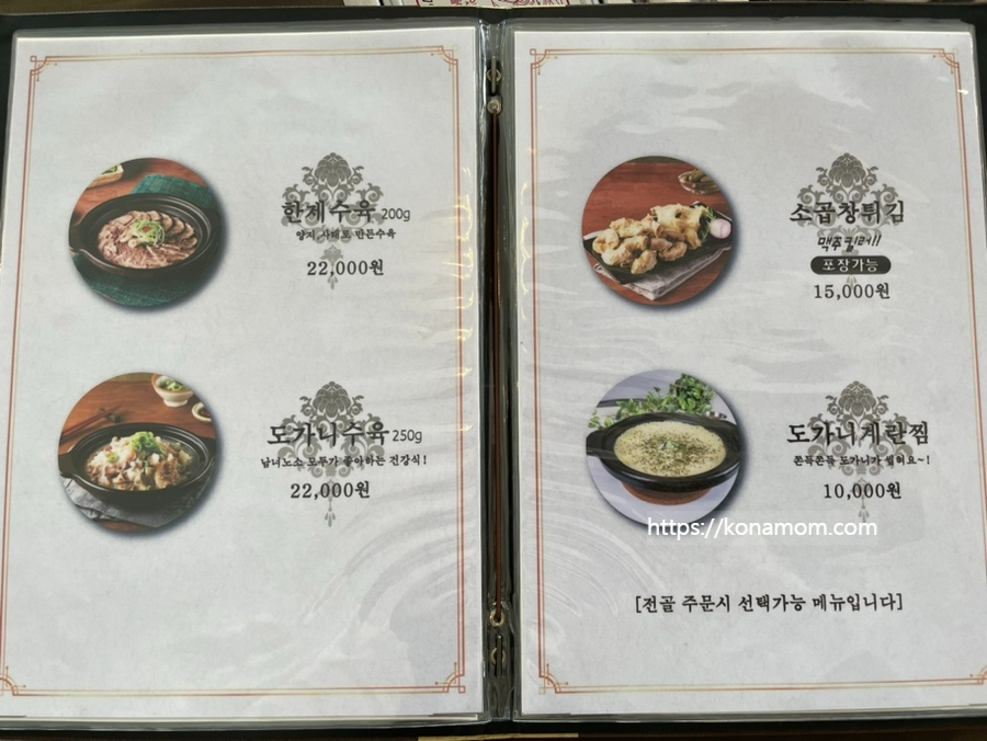 점심에 방문하신다면 한제도가니 칼국수(2인부터 주문 가능)도 드실 수 있어요.