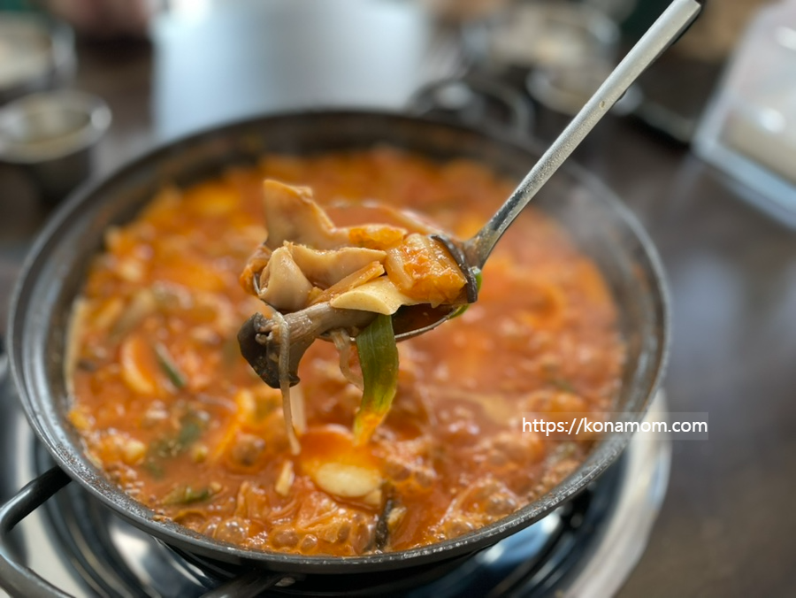 두부, 당면, 떡, 곱창이 듬뿍 들어가 있었어요.
