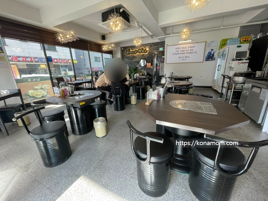 홀은 테이블이 여러 개 있는데, 간격이 좁지 않고 깔끔했어요.