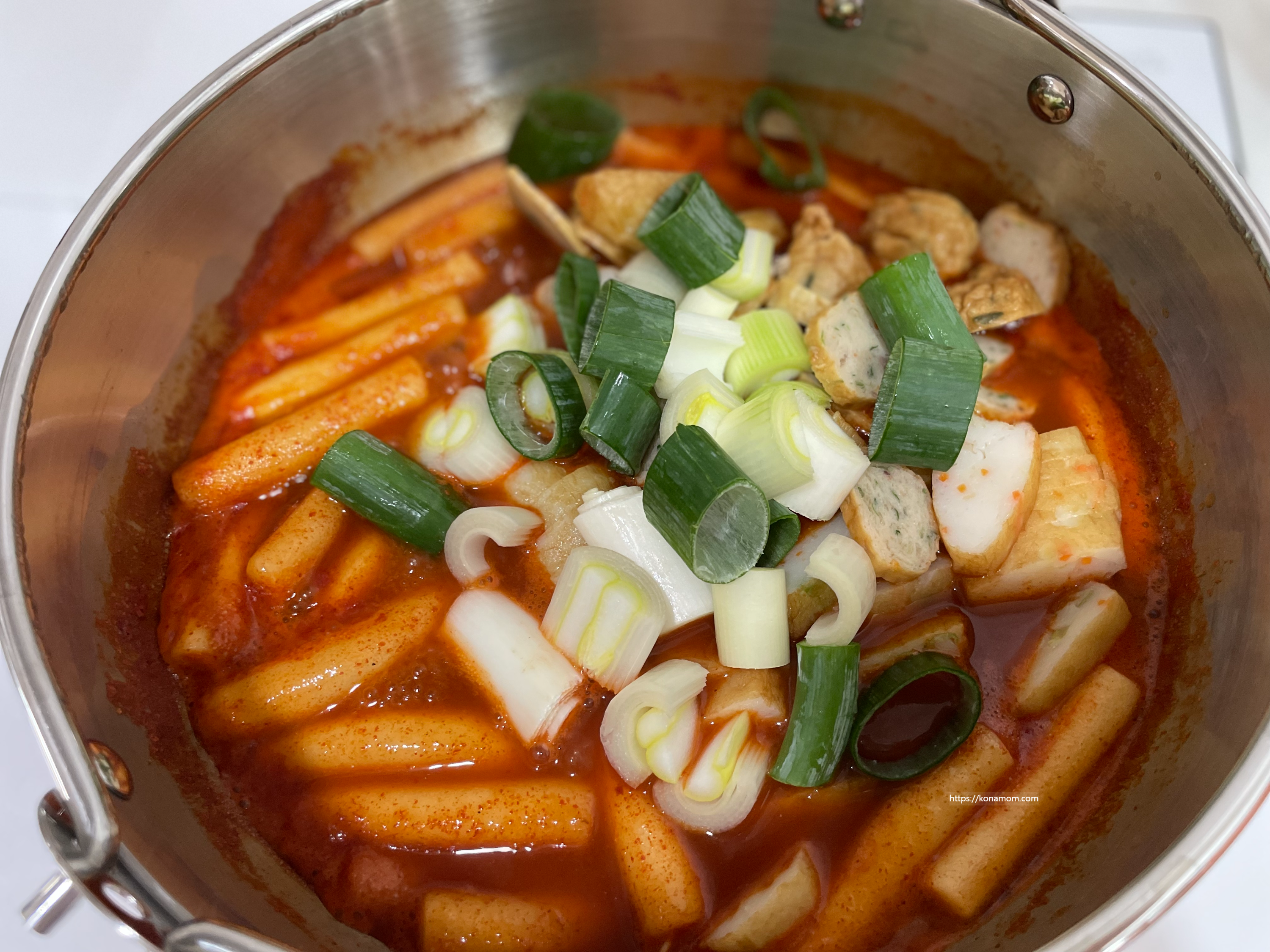 4. 바글바글 끓어오르면 중불로 줄인 후, 떡에 소스가 잘 배어들도록 3~4분간 취향에 맞게 졸여 주세요. 중간중간 냄비 바닥에 붙지 않도록 저어 줍니다.