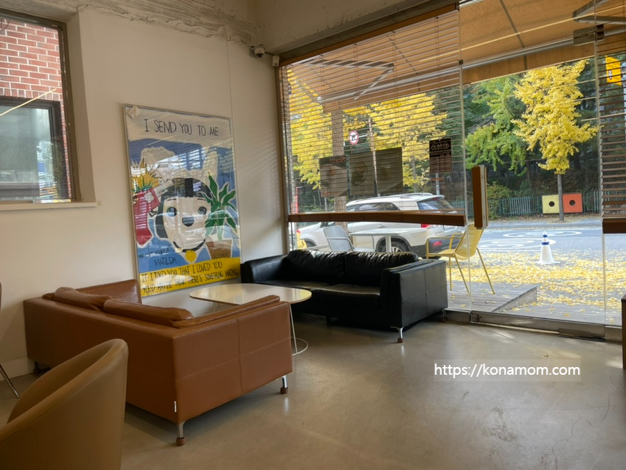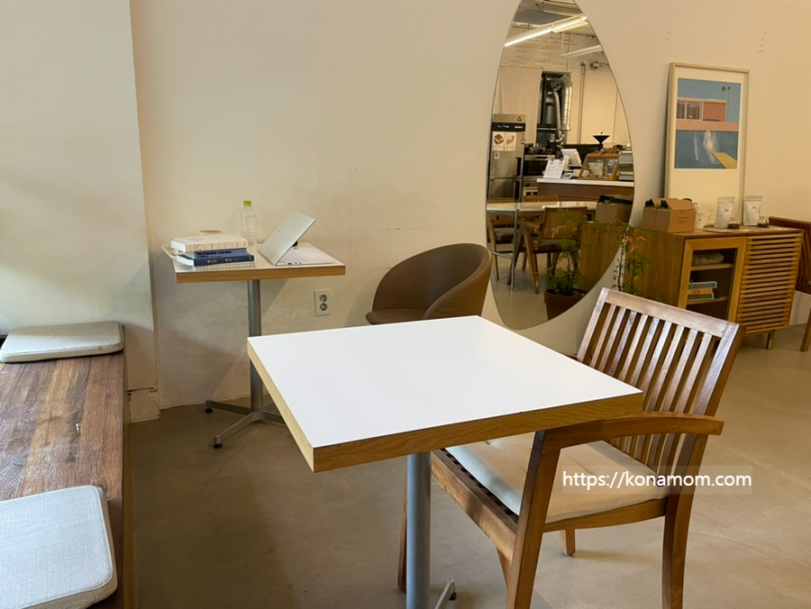 똑같지 않은 의자와 테이블 배치가 카페 분위기와 참 잘 어울려요.
