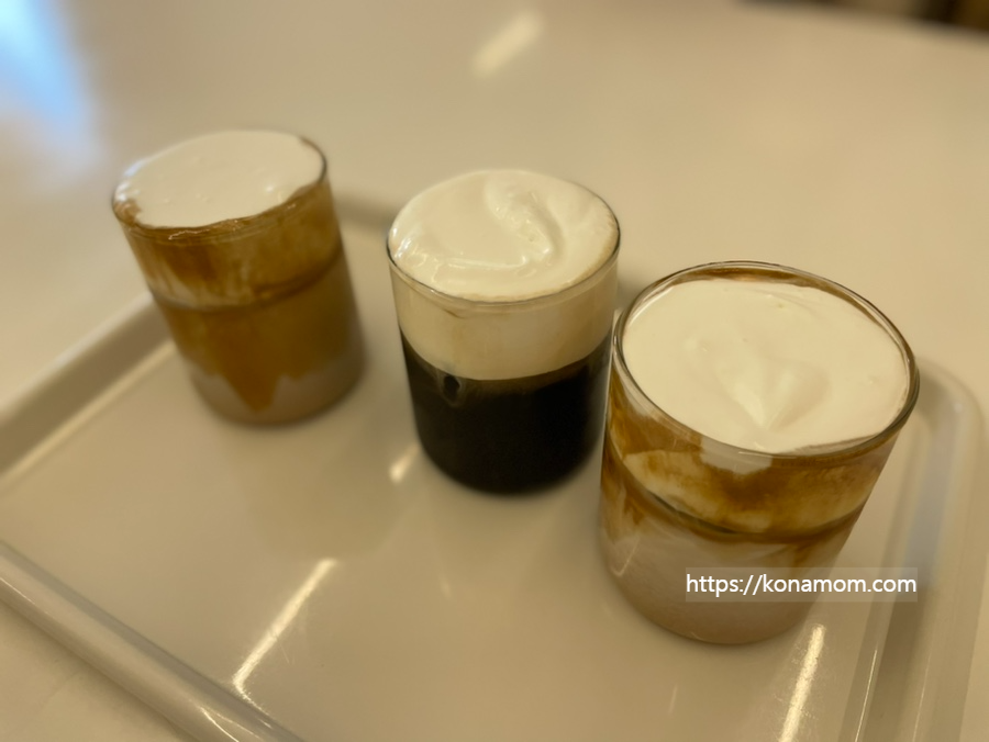저는 개인적으로 위에 크림이 올라가서 라떼랑 먹었을 때 더 어울렸던 것 같습니다.