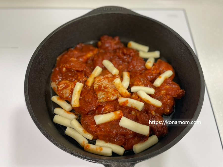 두툼한 살코기와 감칠맛이 일품인 양념에 떡까지 있어서 맛있는 주말 한 끼 간단하게 준비해서 먹을 수 있었습니다.