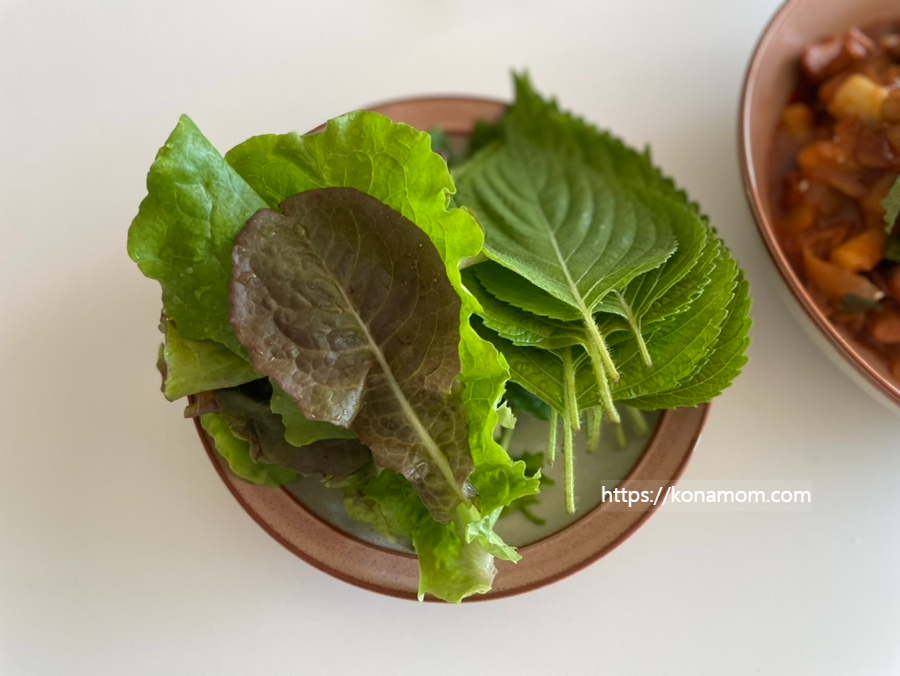깻잎도 위에 올렸더니 식당보다 더 먹음직스러운 것 같습니다.