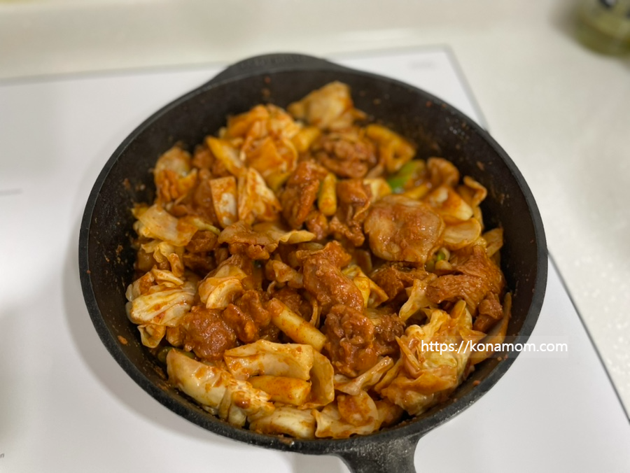 집에서는 닭갈비를 직접 양념하고 고기 손질하고 하기가 쉽지 않은데, 이렇게 간편하게 밀키트로 나오니 집에서 먹는 별미가 되었습니다. 비주얼도 밖에서 사 먹는 것과 별반 다르지 않아 보입니다.