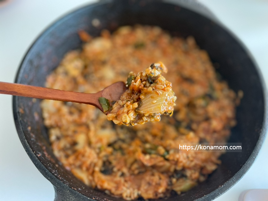 K 디저트! 볶음밥 필수! 야채와 닭갈비를 일부러 조금 남기고 밥, 대파, 김가루 넣어서 볶다가 무쇠팬이기 때문에 일부러 좀 눌어서 먹었습니다. 불 끄고 참기름에 통깨 솔솔 뿌려주면 끝입니다!