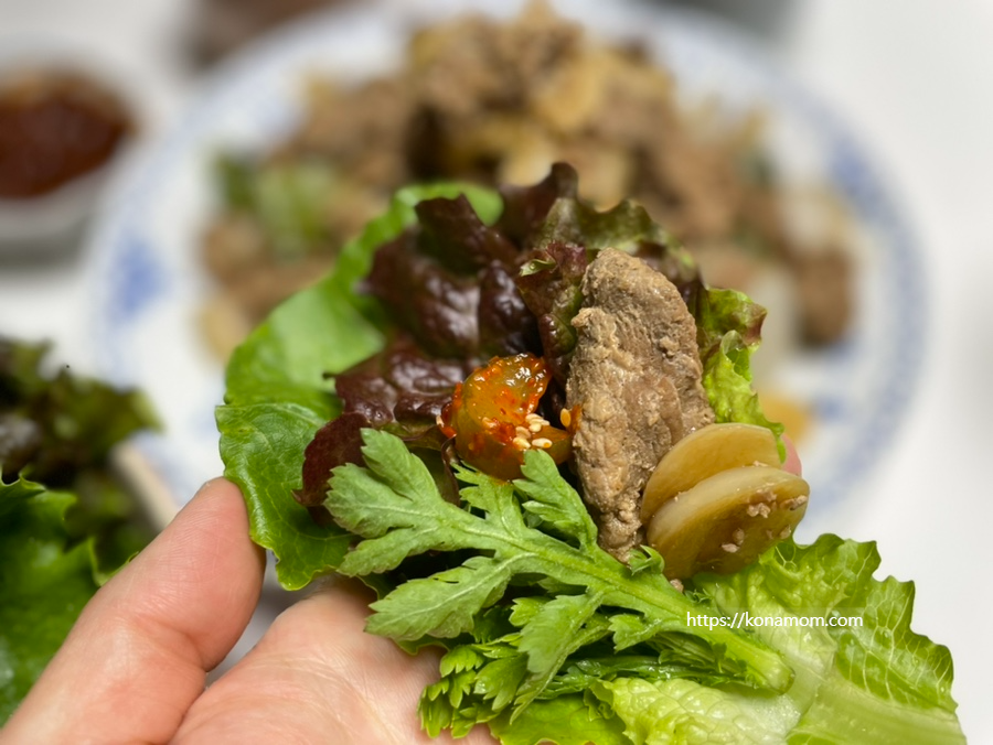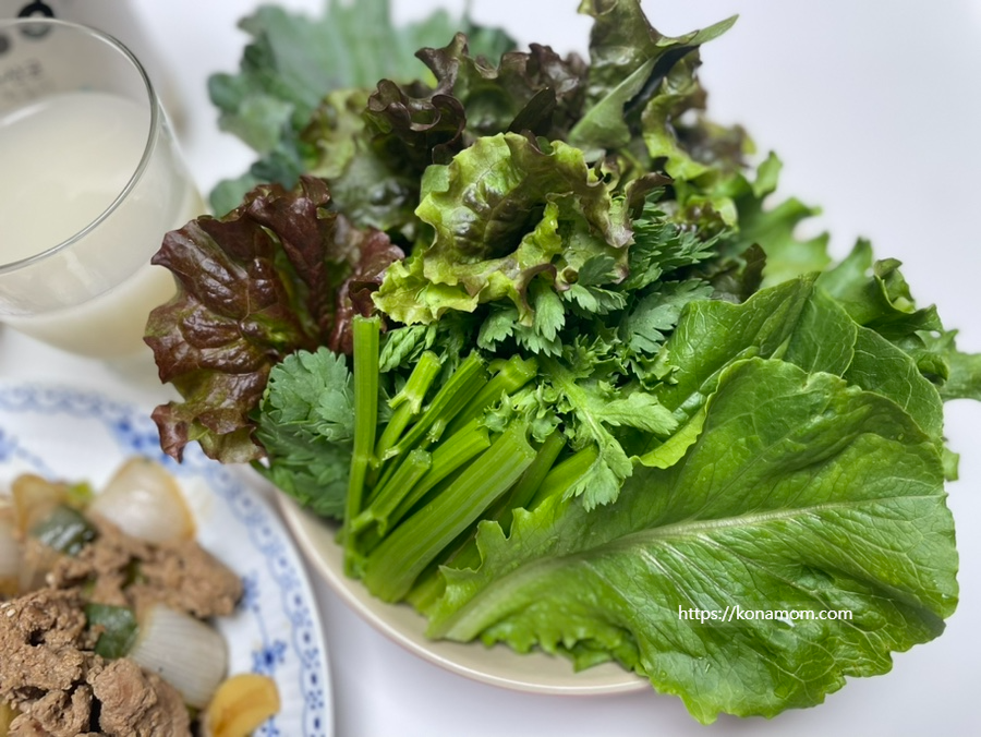 쑥갓은 향이 좋아서 쌈에 같이 싸서 먹어도 맛있죠.