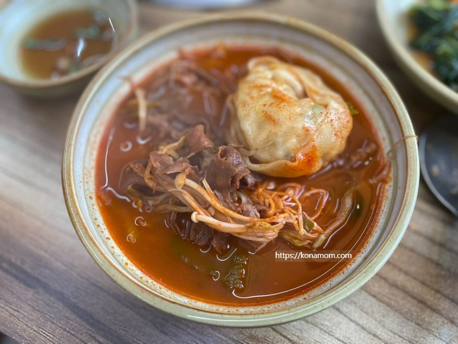 육수는 깔끔하면서 진하고 살짝 칼칼해서 어른들이 좋아할 국물이에요