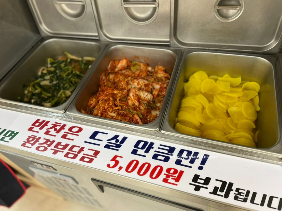 추가 반찬 코너도 정리가 잘 되어 있고 깨끗합니다.