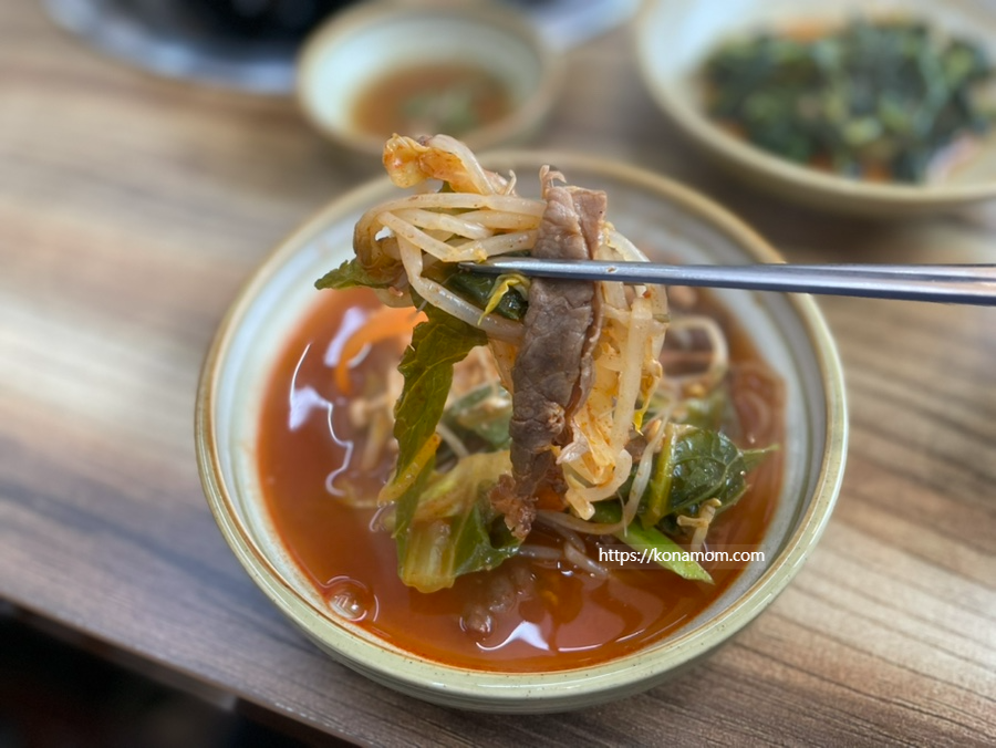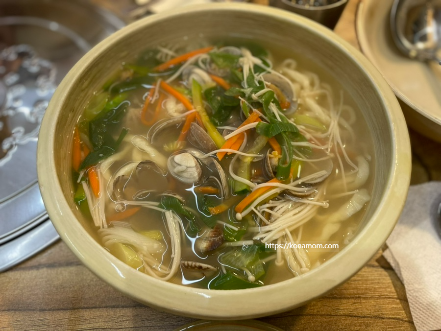 육수는 깔끔하면서 진하고 살짝 칼칼해서 어른들이 좋아할 국물이에요