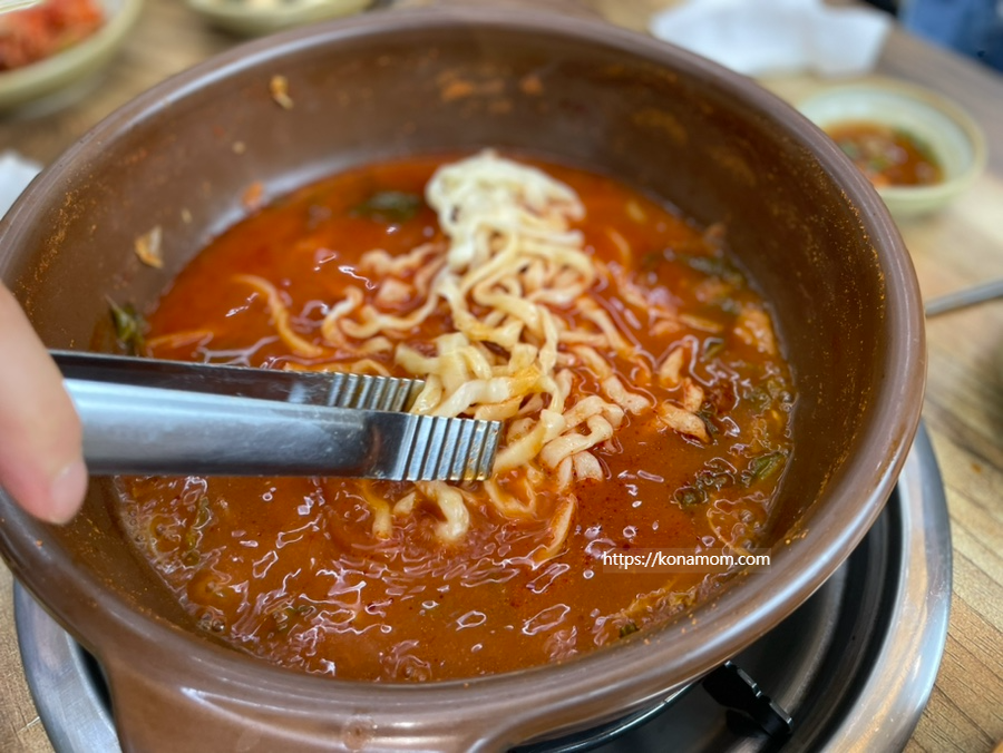 시흥 손만두 맛집 명성손만두칼국수 대야점에서는 만두전골을 다 먹고 나면 칼국수를 넣고 끓여 먹습니다.