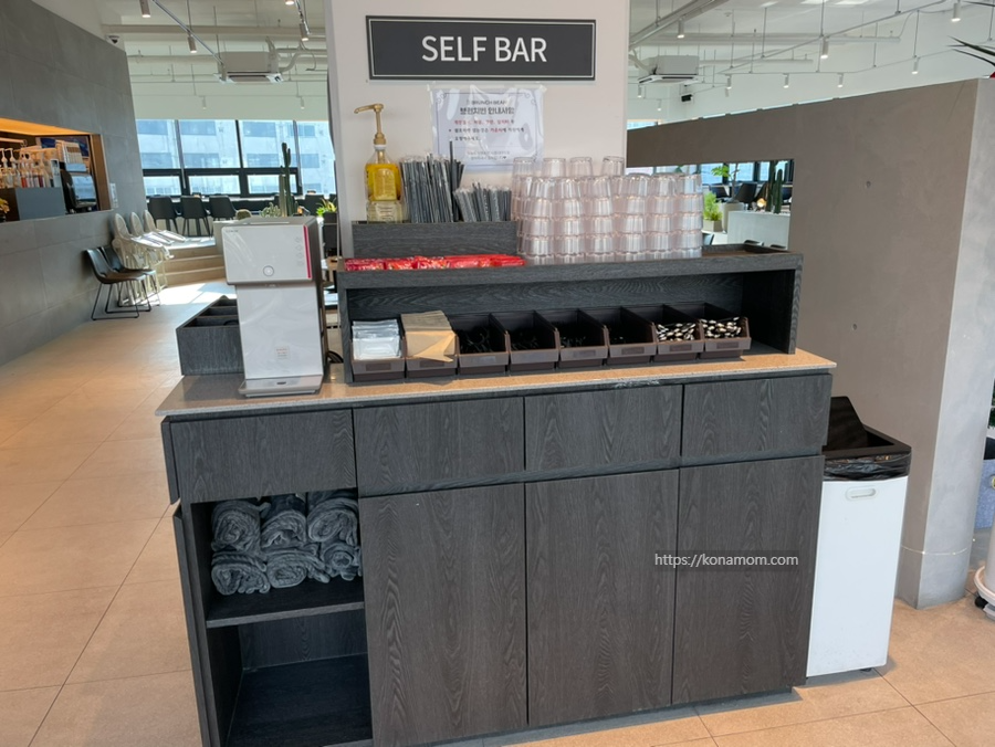 식기, 티슈, 스트로, 케첩 등 필요한 것들은 셀프 바에서 챙겨 가시면 되고요, 유아 의자도 따로 준비되어 있어서 아이와 방문하기 괜찮은 은계 브런치 가게입니다.