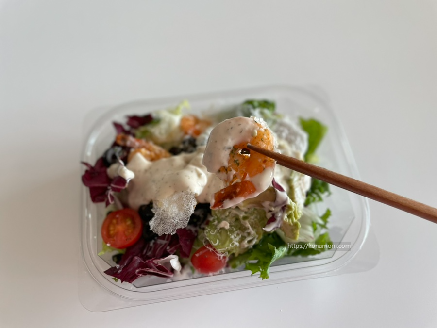 후숙이 잘 된 아보카도도 괜찮았고 신선한 샐러드 야채들도 푸짐하게 많이 들어가 있어서 좋았고 드레싱도 깔끔했습니다.