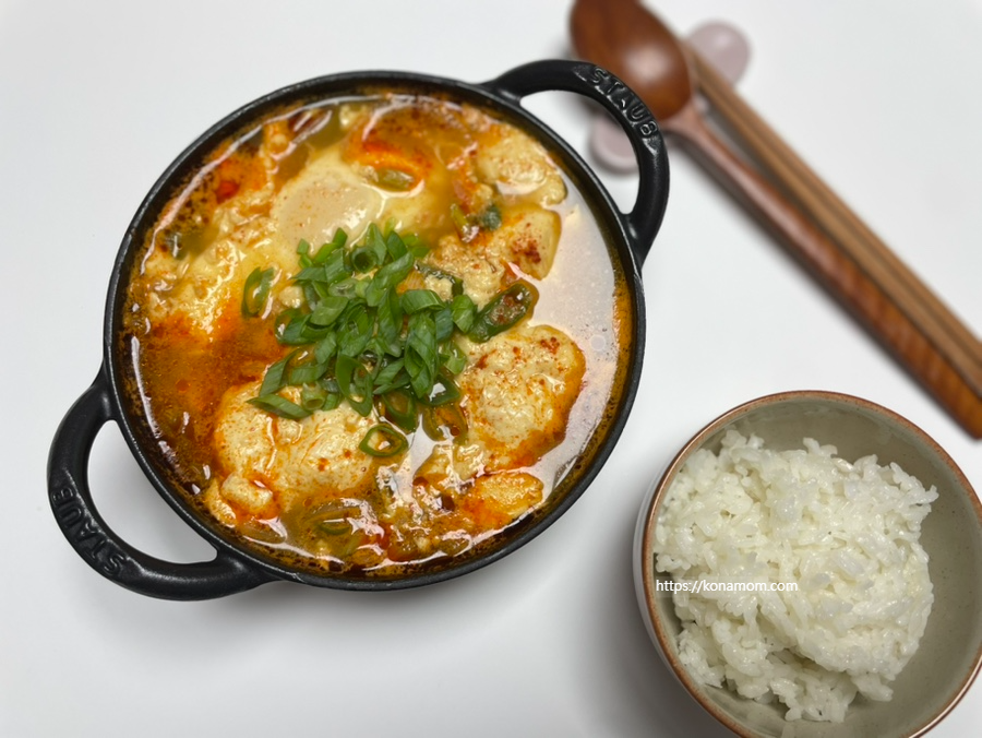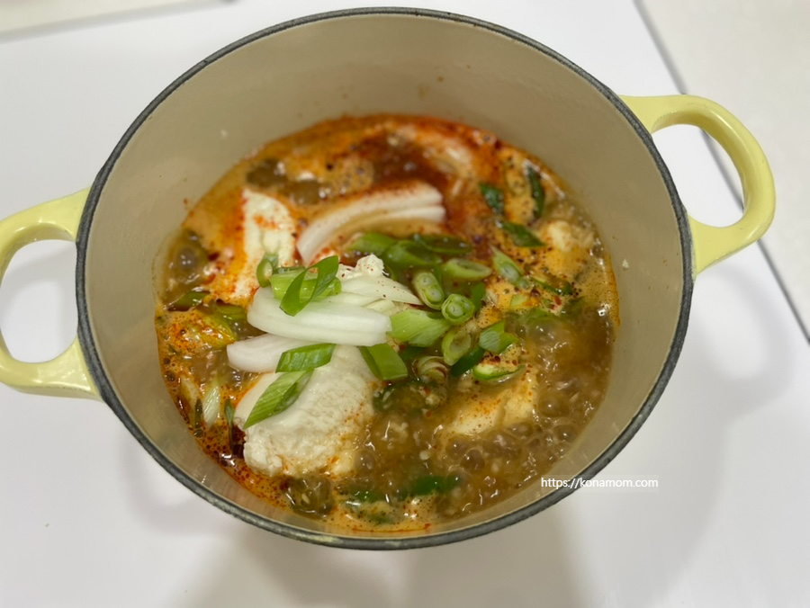 냄비에 육수와 양념장을 넣고 팔팔 끓인 후 순두부를 넣고 3분만 끓여주면 돼요.