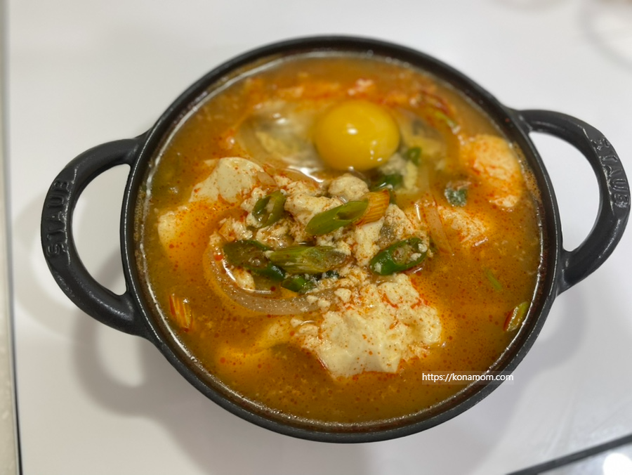 몽글몽글 부드러운 순두부와 칼칼하면서 진한 국물이 떠먹기 좋았습니다.