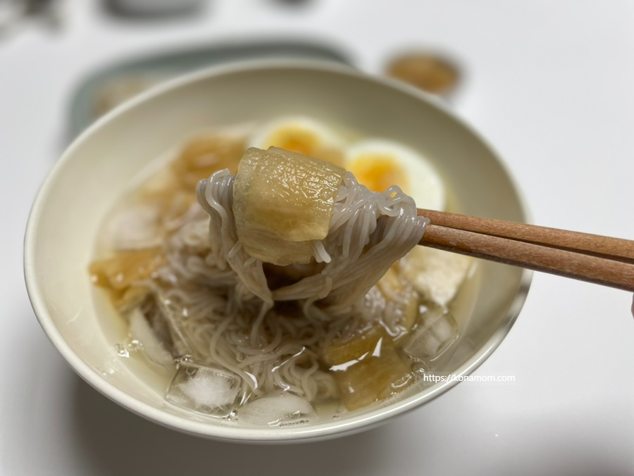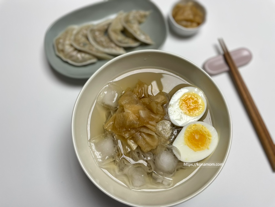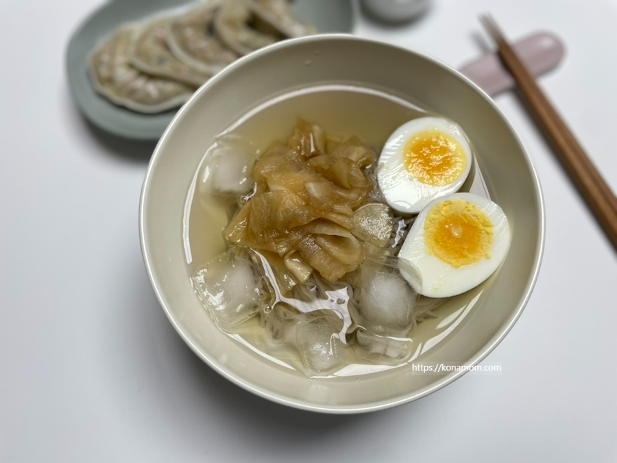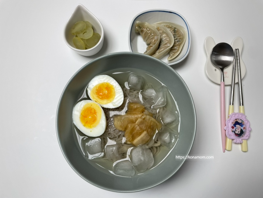 동치미 육수를 미리 얼려뒀다가 먹었으면 좋았을 것 같은데, 시간이 없어서 대신 얼음을 넣고 먹었는데, 오히려 간이 약해서 아이가 먹기 더 괜찮았던 것 같습니다.