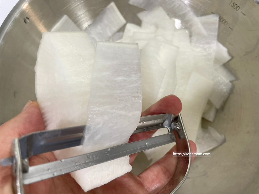 무는 채칼로 얇게 썰어서 준비하고