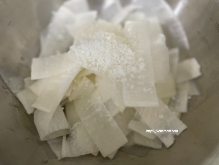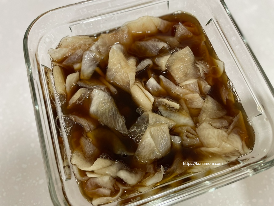 냉면을 먹을 생각을 하니 냉면무가 빠지면 섭섭할 것 같아서 간단하게 냉면무 절임을 해 봤습니다.