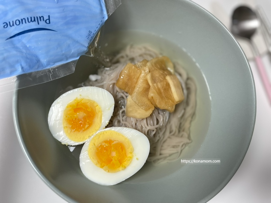 저는 냉면무를 해서 올려서 같이 먹었는데, 집에 열무김치가 있으면 같이 넣고 먹어도 어울릴 것 같아요.
