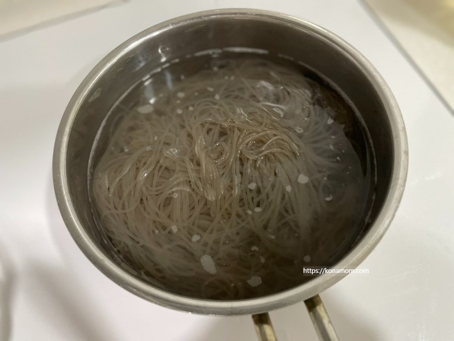 면이 적당히 얇은 편이라 아이가 먹기 좋았습니다.