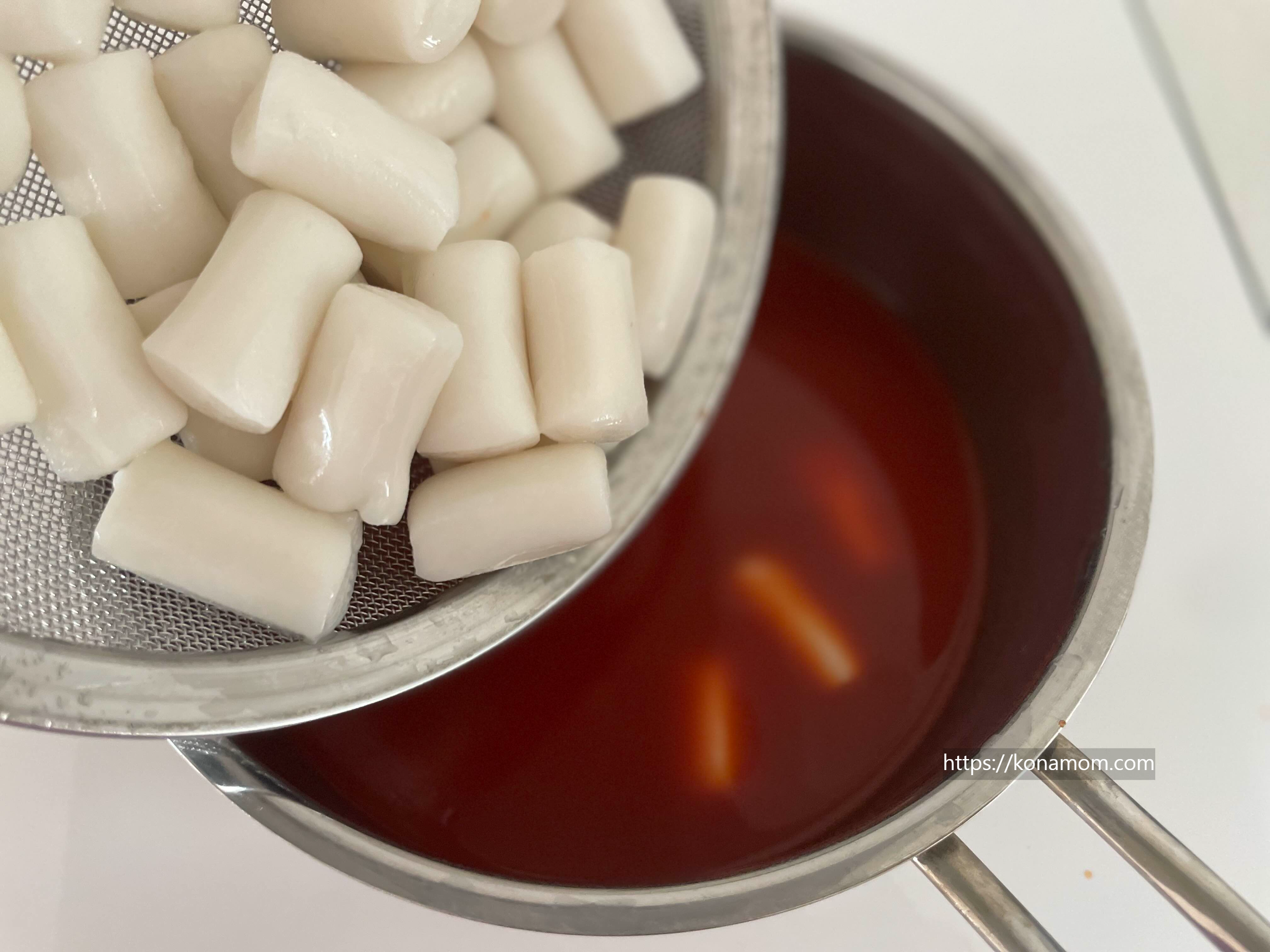 그리고 떡, 어묵을 한꺼번에 넣어주면 되는데요, 어묵이 퍼지는 걸 안 좋아하신다면 어묵은 나중에 넣으셔도 돼요.