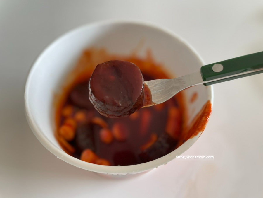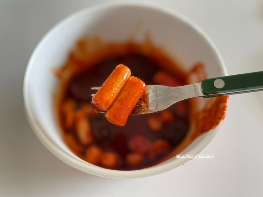 떡은 사이즈가 많이 작은 편인데, 질기지 않고 혼자 먹기 딱 적당한 양이고 양념이 잘 배어서 좋습니다.
