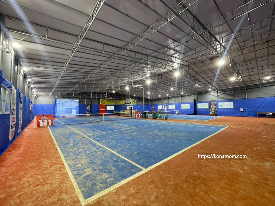 층고가 일반 실내 테니스장보다는 높은 편이라 높은 로브 외에는 불편함이 없었습니다.