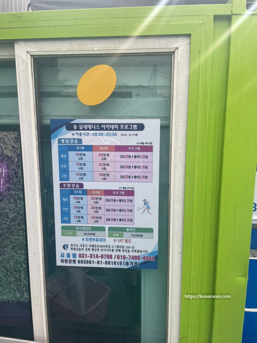 시흥 실내테니스 코트 송 실내테니스 아카데미 강습 및 코트 대관 가격정보입니다.