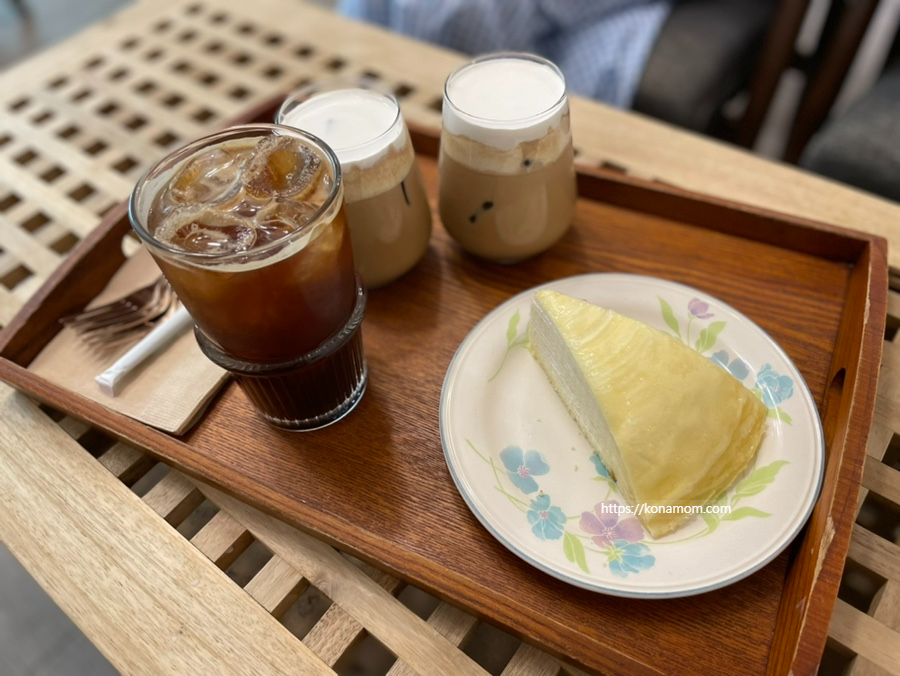 아이스 아메리카노, 바닐라빈 라테, 크레이프를 주문했습니다.