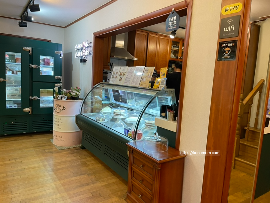 시흥시청 근처 카페 커피와 케이크 주문은 1층 주방 쪽에서 하시면 됩니다.
