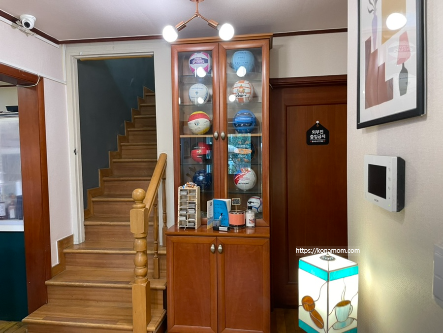 2층으로 올라가는 곳인데요, 곳곳에 있는 소품들 구경하는 재미도 있습니다.
