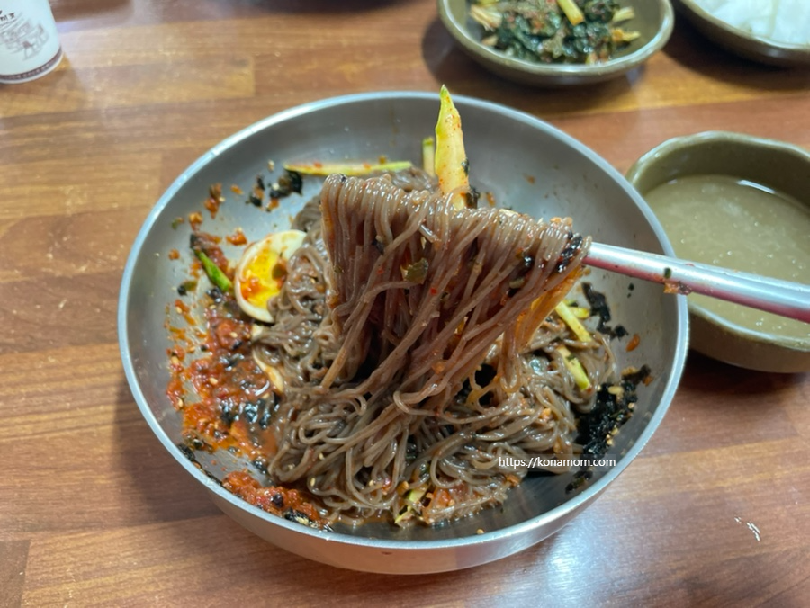 비빔으로 먹으면 양념 간이 세거나 자극적인 곳들도 많은데, 물왕저수지 막국수 강릉해변메밀막국수 시흥점 비빔막국수는 자극적이지 않고 먹을수록 맛있고 고소하니 꼭 할머니가 해주시는 음식 같았습니다.