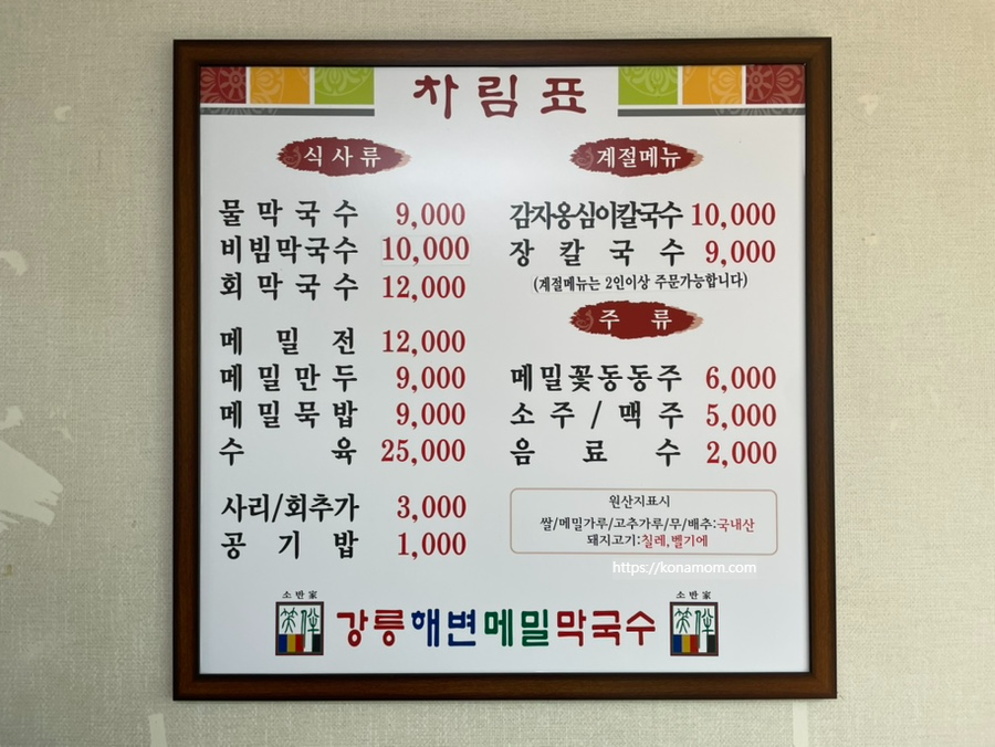 강릉해변메밀막국수 메뉴입니다.