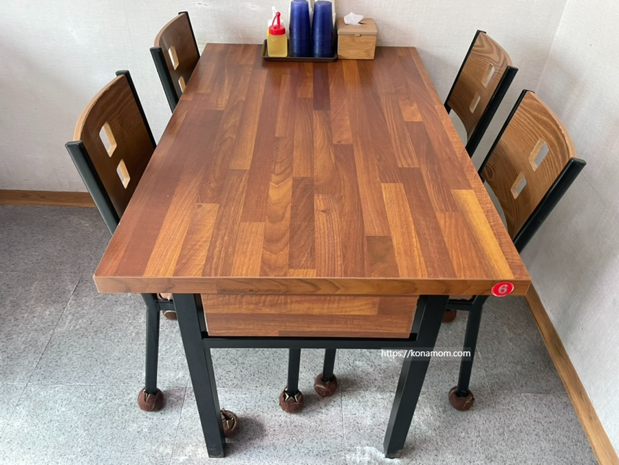 수저, 냅킨은 테이블 옆 서랍에서 꺼내서 사용하시면 됩니다.