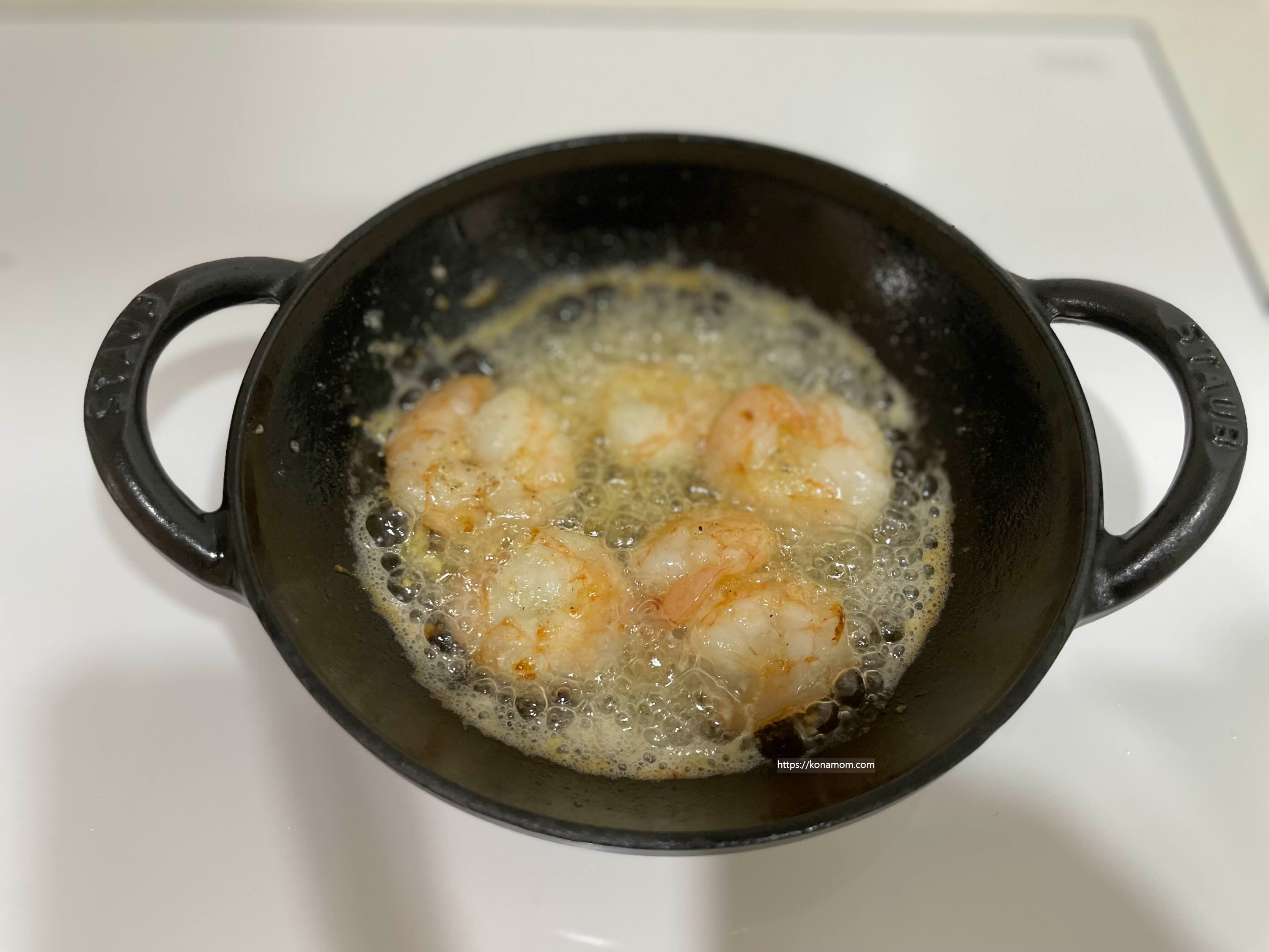 새우를 넣고 후추, 허브솔트 조금 넣어서(개인 간에 따라서 추가해 주세요.) 볶다가 새우가 노릇노릇하게 익으면 드시면 됩니다.