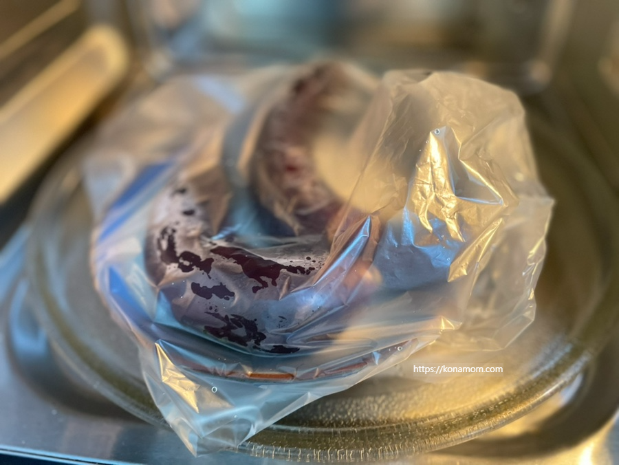 랩이나 위생팩으로 덮어서 3분 30초~4분 정도 익혀줍니다.