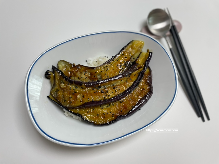 약간 장어덮밥 느낌인데, 가지, 데리야끼 소스만 있으면 돼서 재료도 간단한데 만드는 것도 완전 요리 기술 없어도 가능한 초보요리, 자취요리로 딱입니다.