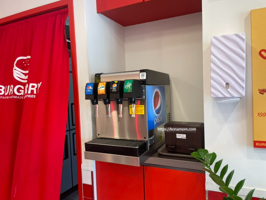 매장 식사로 세트 주문을 하셨다면 컵에 얼음을 담아서 주시는데, 가져다 드시면 됩니다.