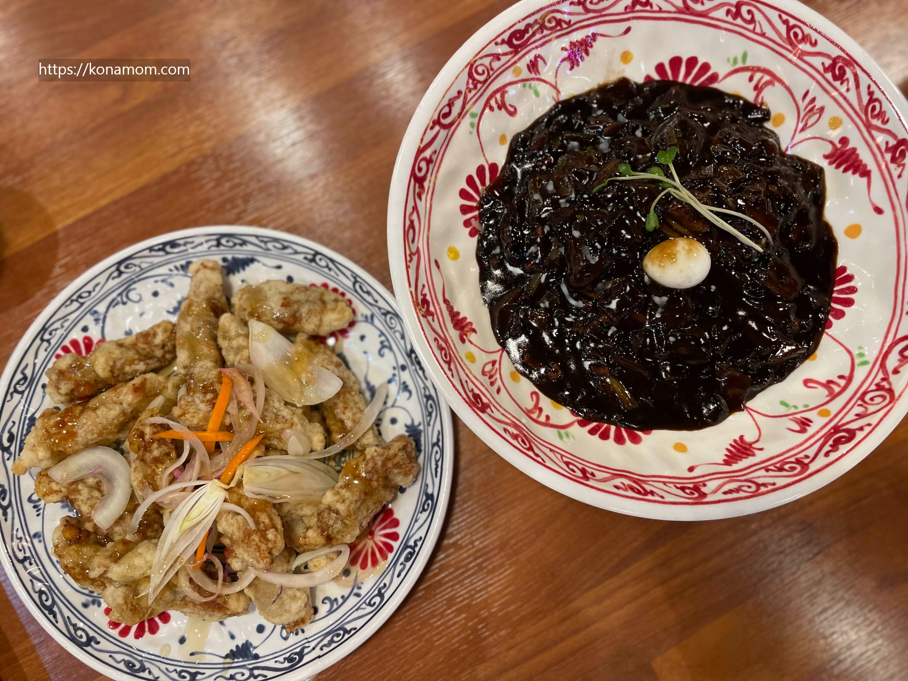 메뉴는 요리류, 식사류, 주류, 그리고 세트 메뉴까지 다양하게 있는데요, 아이랑 둘이 가면 늘 자장면 하나에 탕수육 하나 주문해서 먹어요. 다양하게 주문해서 먹고 싶지만 아이와 둘이 먹기엔 이렇게만 주문해도 양이 좀 많아서요.