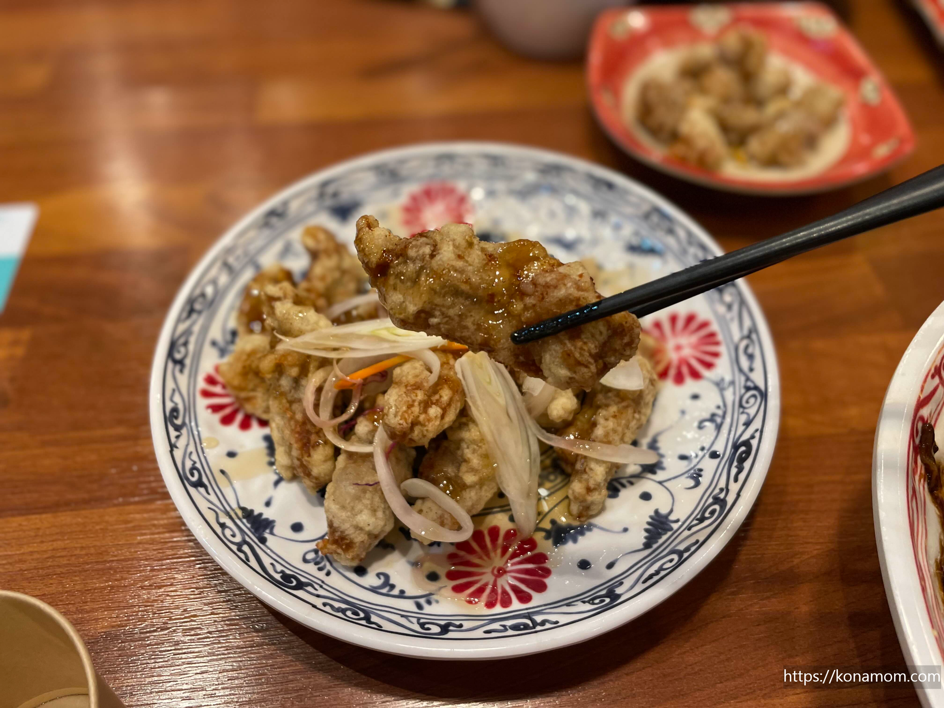 소스가 묻어 있지만 바삭함이 계속 유지가 되는 게 신기했어요. 이렇게 살짝만 뿌려서도 그렇지만 소스 자체가 과하지 않으면서 적당하고 같이 나온 양파랑 같이 먹으면 깔끔하기도 합니다!