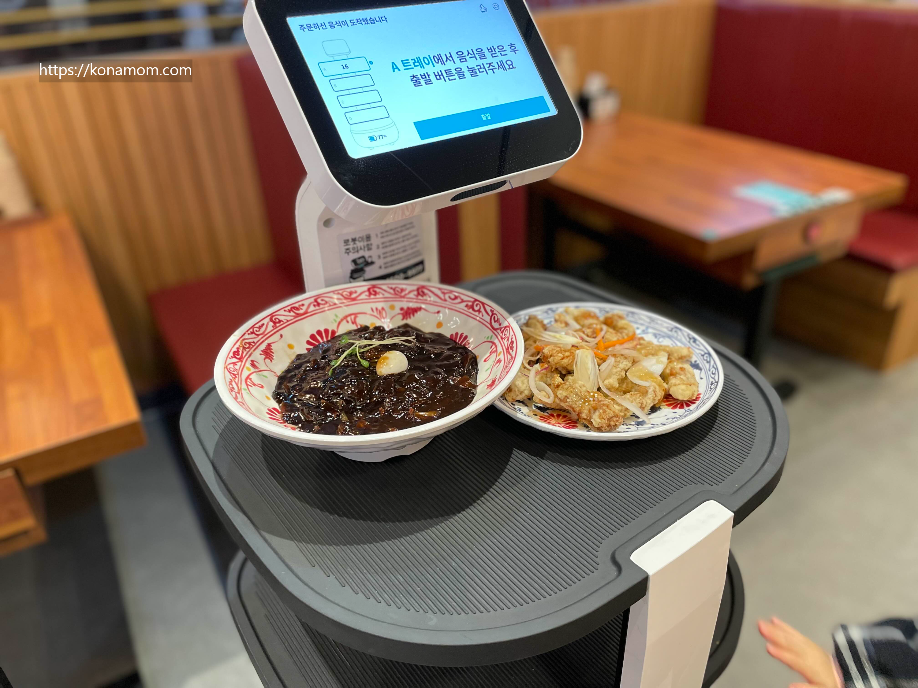 은행동 맛집 보배반점은 음식을 주문하고 나면 이렇게 사람이 아닌 로봇이 가져다줘요.