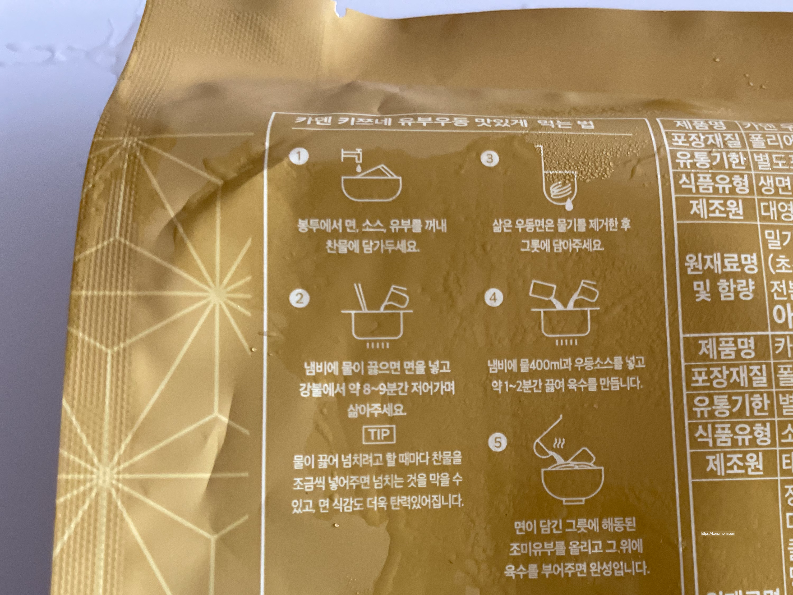 면, 소스, 유부는 자연해동 또는 찬물에 담가뒀다가 사용하면 됩니다.