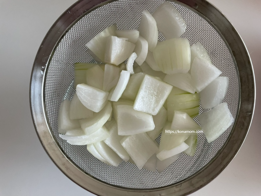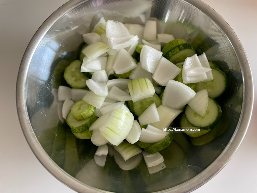 오이와 양파는 물기를 빼주고