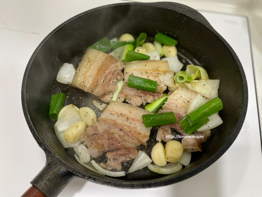무쇠팬은 바삭하게 구웠을 때 코팅팬과 다른 느낌이 확실히 있는 것 같습니다.