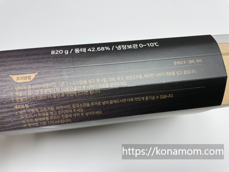 3~4인분양으로 20분 조리하면 된다고 하는데요, 저흰 코나 아빠랑 저 이렇게 둘 이 먹었는데, 딱 맞았습니다.ㅋㅋㅋ 두부나 다른 것을 더 넣으면 3인이서 드실 수 있을 듯요.